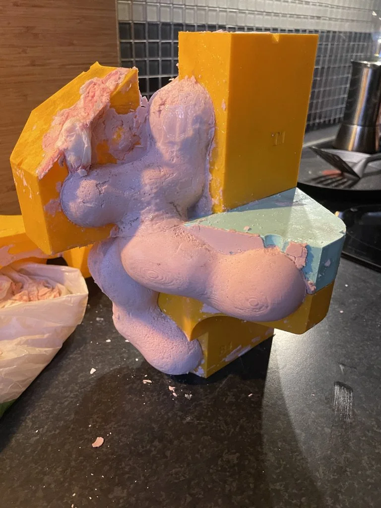 CORAPOD–klassesett (versjon 1A) består av 3 komplekse støpeformer. I dette forsøket ble formene 3D-printet i vannløselig PVA som kan skylles bort med vann etter støping.
